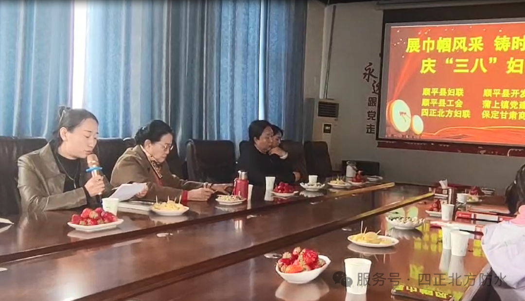 2025年3月7日,河北四正北方新型材料科技有限公司聯合順平縣婦聯、順平縣開發區、順平縣總工會、蒲上鎮黨建辦、甘肅商會婦聯五家單位,共同舉辦"展巾幗風采·鑄時代輝煌"國際婦女節紀念活動。活動通過"紅色教育+榜樣表彰+文化展演"的創新形式,展現新時代職業女性風采。